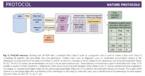 A recent study published in Nature Protocols (here) describes a high-throughput semi-supervised phenotyping pipeline that begins with EMR data and outputs a phenotype algorithm, the probability of the phenotype for all patients, and a phenotype classification (yes or no). (Disclosure: I am a co-author.) This is a project conceived of nearly ten years ago, as several of us, including senior authors Kat Liao, Tianxi Cai, and Zak Kohane, were reviewing EMR clinical data to establish algorithms for RA and IBD. The process was laborious: we manually reviewed charts to establish a gold standard data set on which to train and test algorithms using structured and unstructured data. While we were excited about the prospects of using EMR data to define a wide-range of phenotypes, we were daunted by the prospects of what it would take to do this efficiently and accurately for more than a few phenotypes. From this problem statement emerged PheCAP. The main breakthrough of PheCAP is the ability to standardized steps in creating EMR algorithms, which in turn improves efficiency, facilitates data checks as well as replication across institutions (see Figure below).