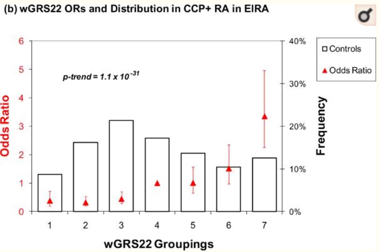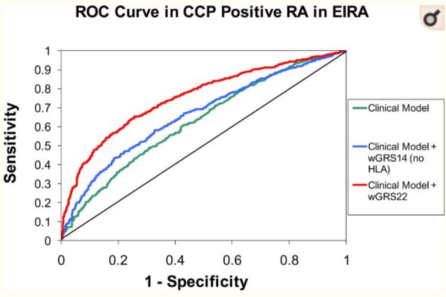 In contrast, rheumatoid arthritis (RA) represents an example where identifying those at increased risk is not clinically actionable, at least today. Back in 2010 we found a simple genetic risk score added to a clinical model greatly improve AUC for predicting risk of RA from 0.63 to 0.75, resulting in 3-fold increase for 10% of the population (see Figure 1 & Figure 2 in this Annals of Rheumatic Disease publication). We extended our method to polygenic scores, with modest increase in predicting risk when thousands of variants were included in a model (see here for Stahl et al Nature Genetics 2012). I was a practicing rheumatologist at the time of these studies, and I would have conversations with my clinical colleagues about what we would do with this information, should it be available to us. Unlike LDL-lowering therapy and other lifestyle interventions to decrease risk of CAD, there was no obvious intervention available to decrease risk of RA. The only lifestyle intervention was to counsel against smoking, as smoking is a risk factor for RA. But, duh, every physician already counsels against smoking, which should be done regardless of a genetic risk score. Thus, a genetic risk score for RA risk was not clinically actionable. [A personal footnote: this observation was one reason I decided to move from academics into the pharmaceutical industry – see here.]